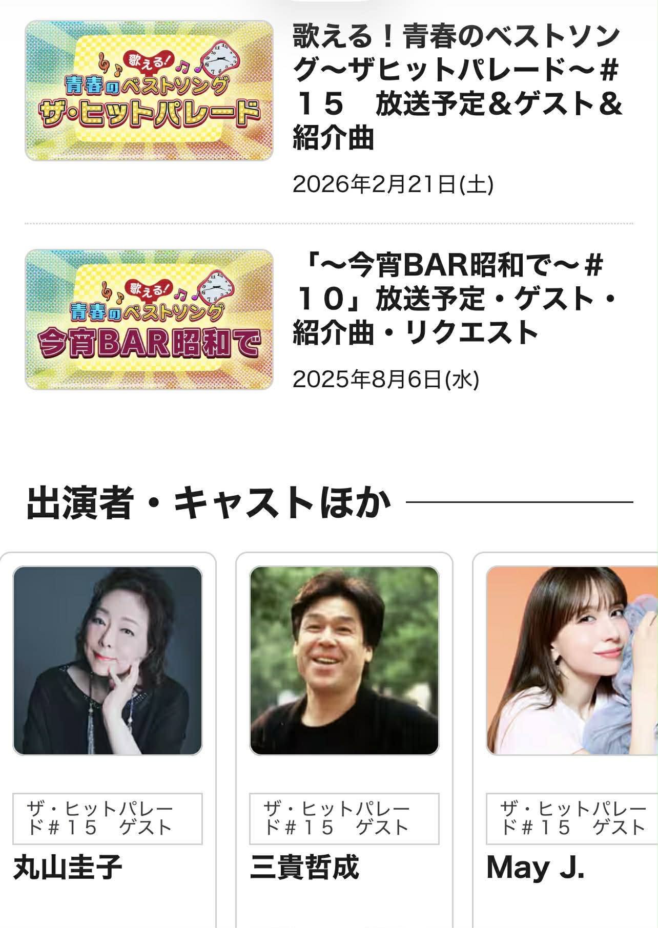 2026.3.28『歌える!青春のベストソング〜ザ・ヒットパレード#15』出演情報!
