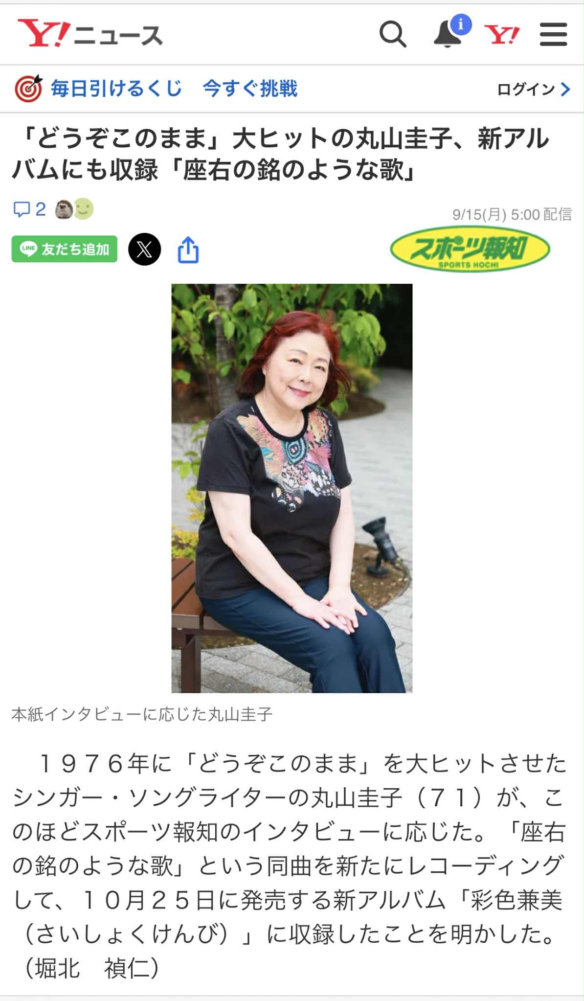 ニュー💿アルバム『 #彩色兼美 』が👍🏻前評判の #丸山圭子 さん