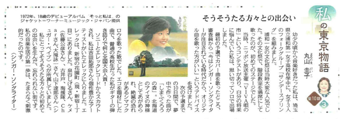 東京新聞<私の東京物語>丸山圭子(3) そうそうたる方々との出会い ![]() |