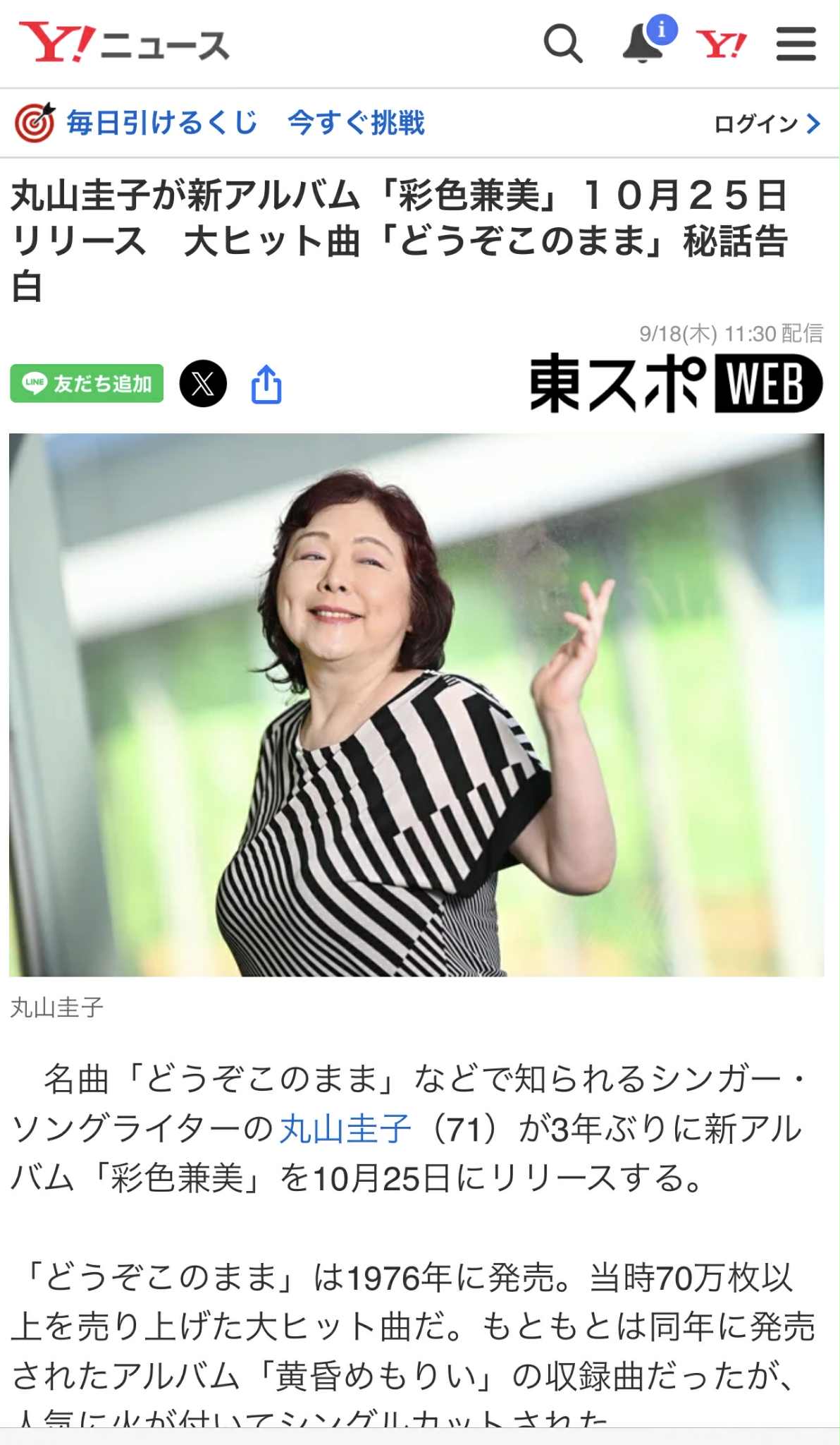 「どうぞこのまま」大ヒットの丸山圭子、新アルバムにも収録「座右の銘のような歌」