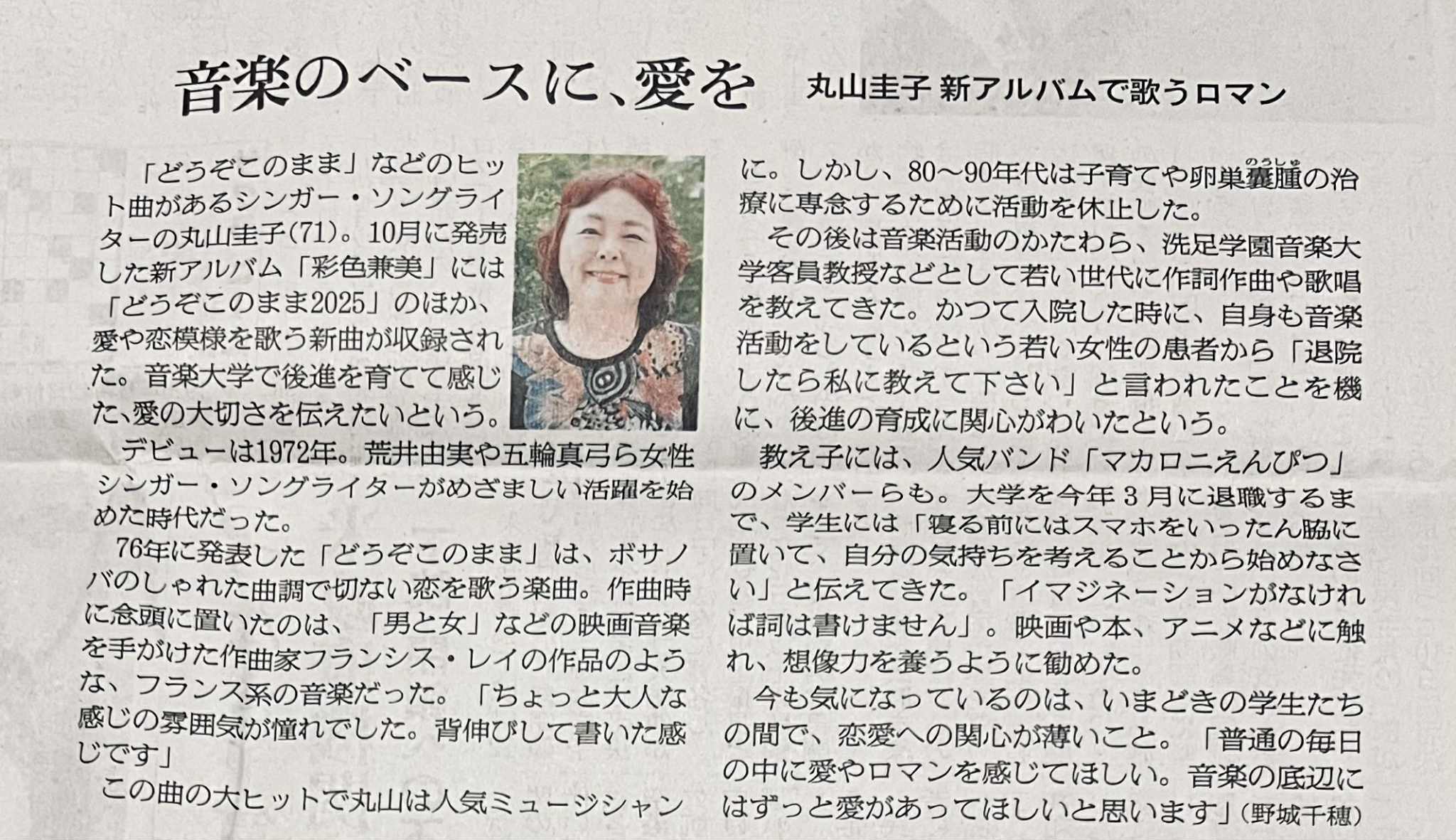 名曲「どうぞこのまま」の丸山圭子さん 教壇で伝えた「愛の大切さ」