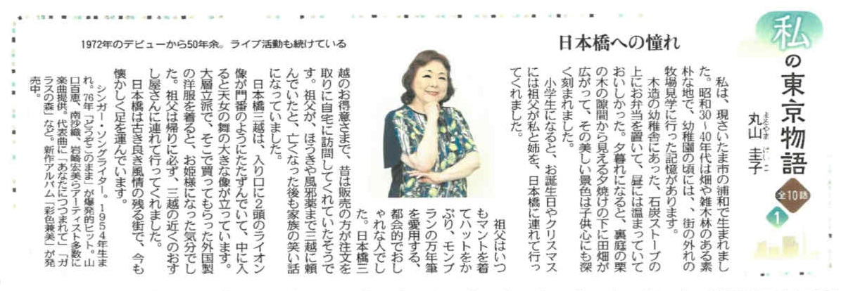 東京新聞<私の東京物語>丸山圭子(1) 日本橋への憧れ ![]() |