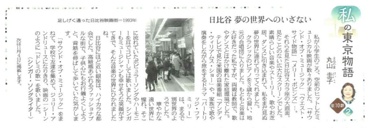 東京新聞<私の東京物語>丸山圭子(2) 日比谷 夢の世界へのいざない ![]() |