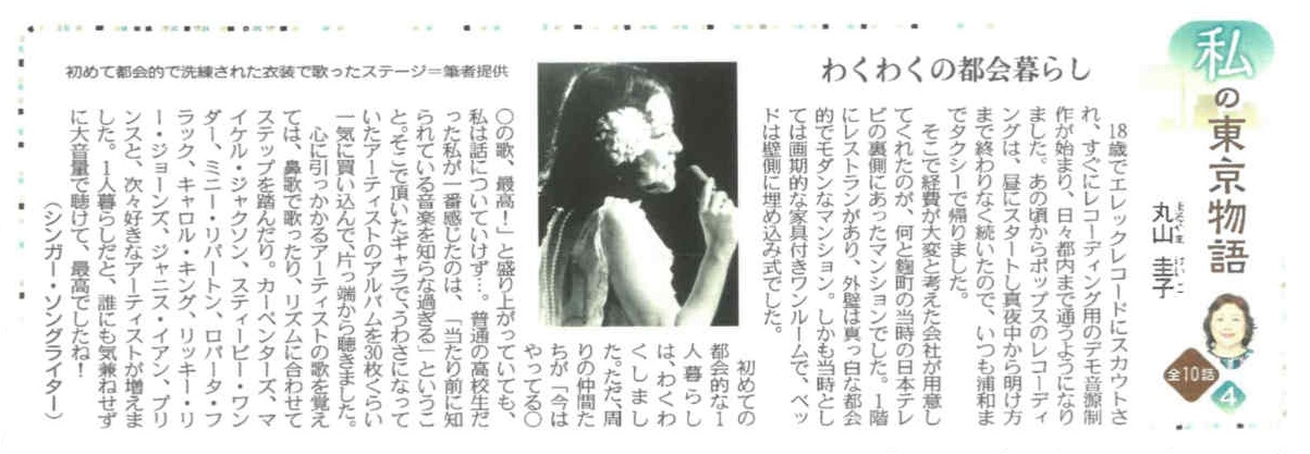 東京新聞<私の東京物語>丸山圭子(4) わくわくの都会暮らし ![]() |